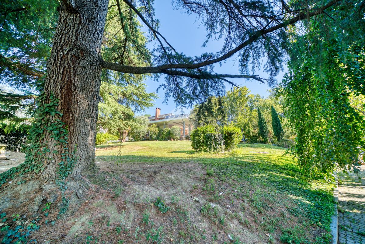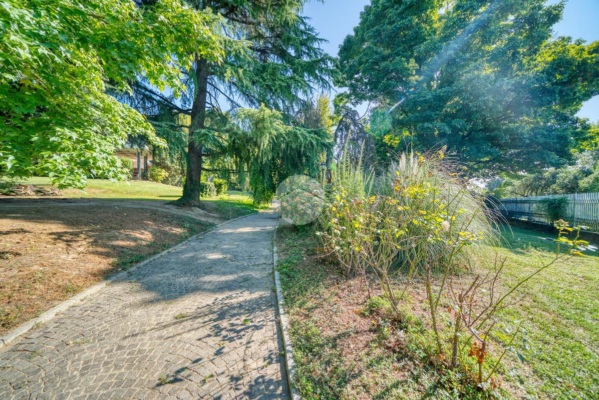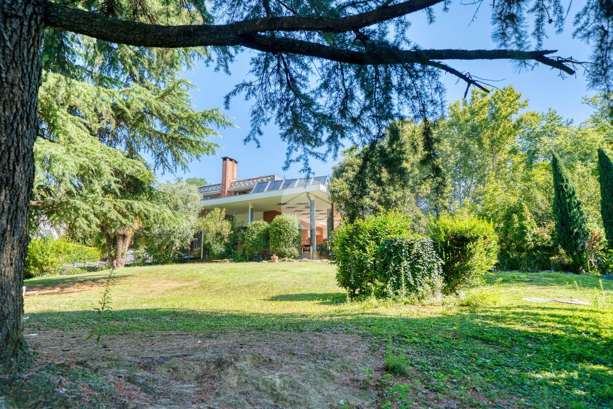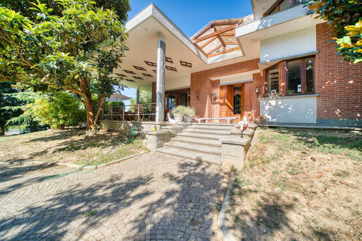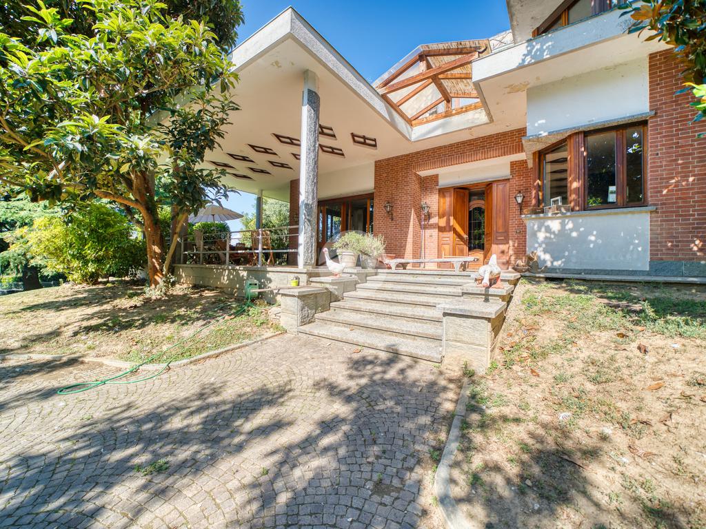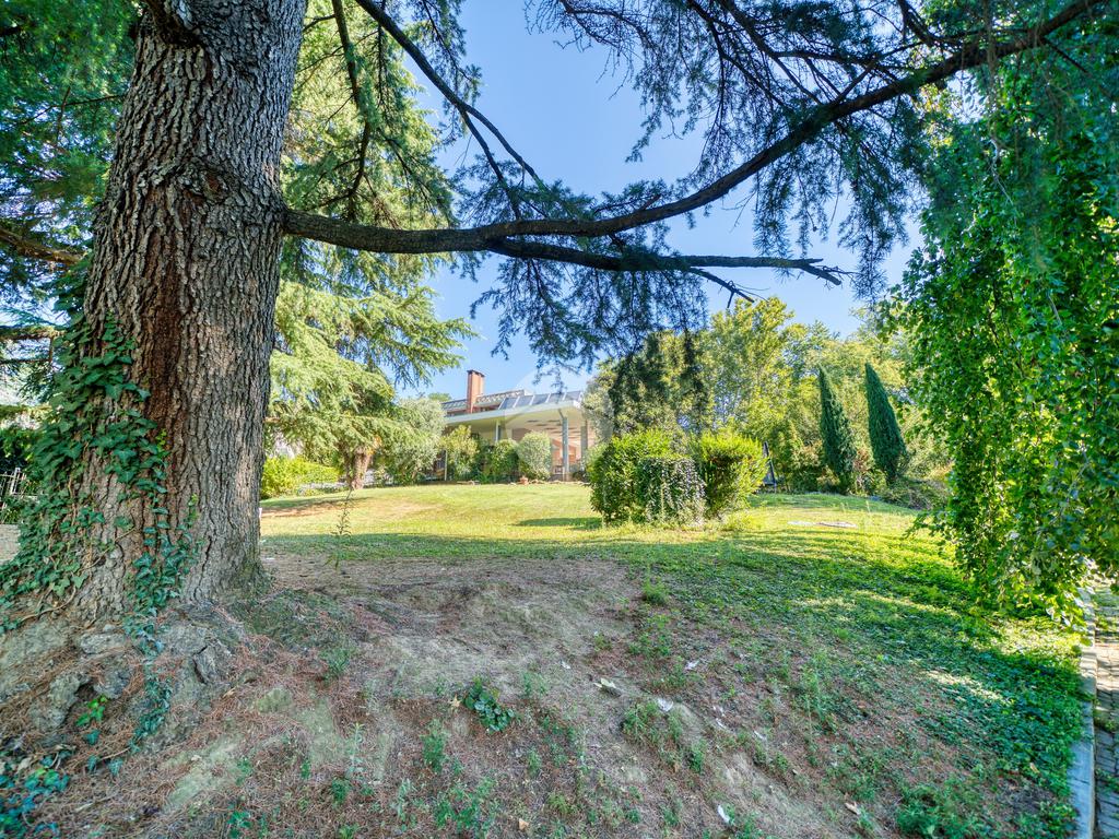 Strada Santa Maria: Immersa nel verde della collina Morenica di Rivoli, circondata da circa 3500 mq di giardino privato, ad una altitudine di circa 400 mt slm. nella privacy più assoluta, con un viale di ingresso riservato che si snoda tra gli alberi, sorge questa Villa in stile classico, ricca di dettagli raffinati. Salendo alcuni gradini ci si trova sul patio esterno, che circonda tutta la zona giorno. La porta di ingresso conduce direttamente al grande e luminosissimo salone, dotato di finestre e porte-finestre affacciate sul patio, oltre che di un particolare camino interno/esterno. Un disimpegno conduce ad un ampio studio, al soggiorno con cucina, al bagno del piano e ad un ripostiglio. Al piano superiore, quattro camere da letto, ognuna con il suo bagno en-suite. Al piano interrato, una tavernetta, autorimessa per 6/8 auto ed una grande cantina, oltre ad un locale di sgombero, .