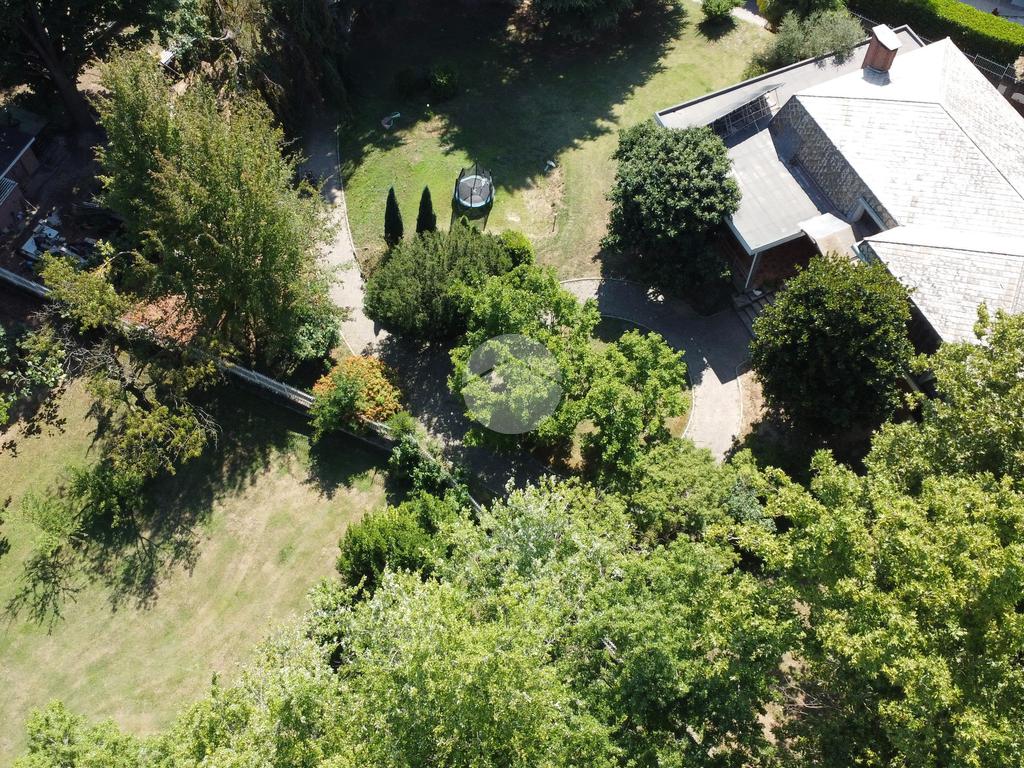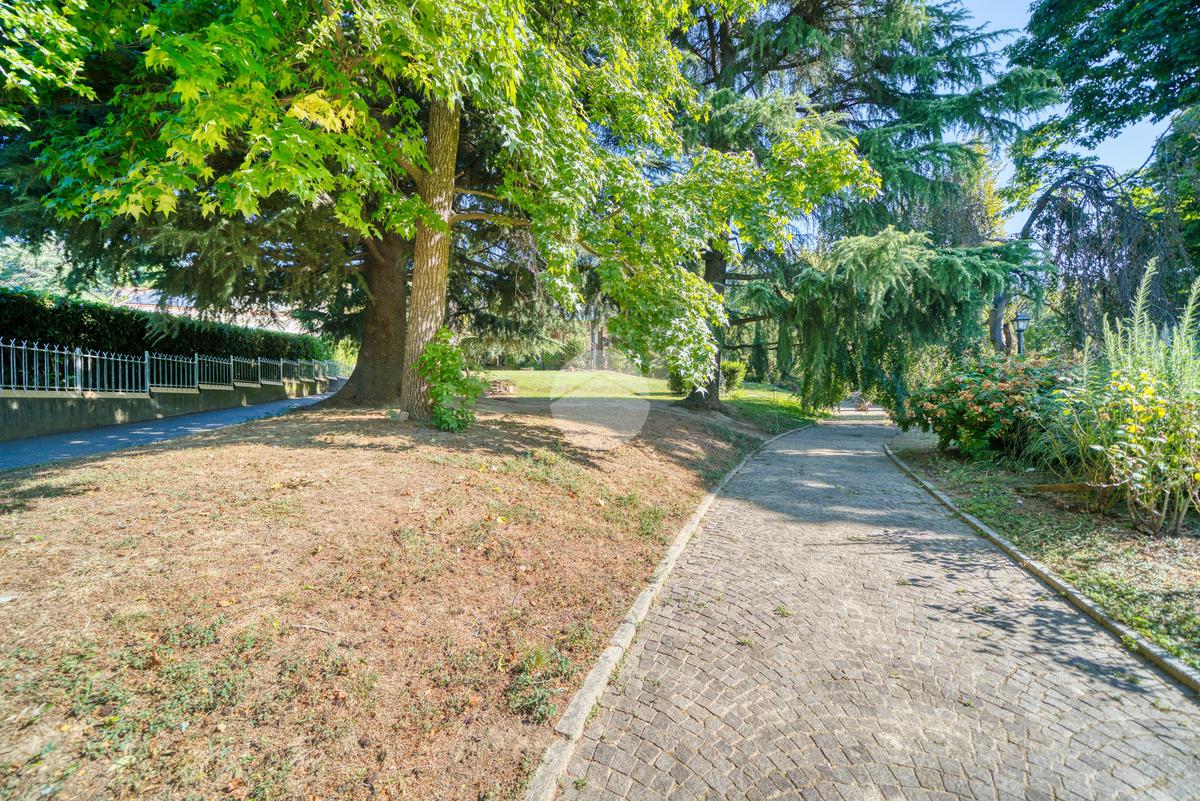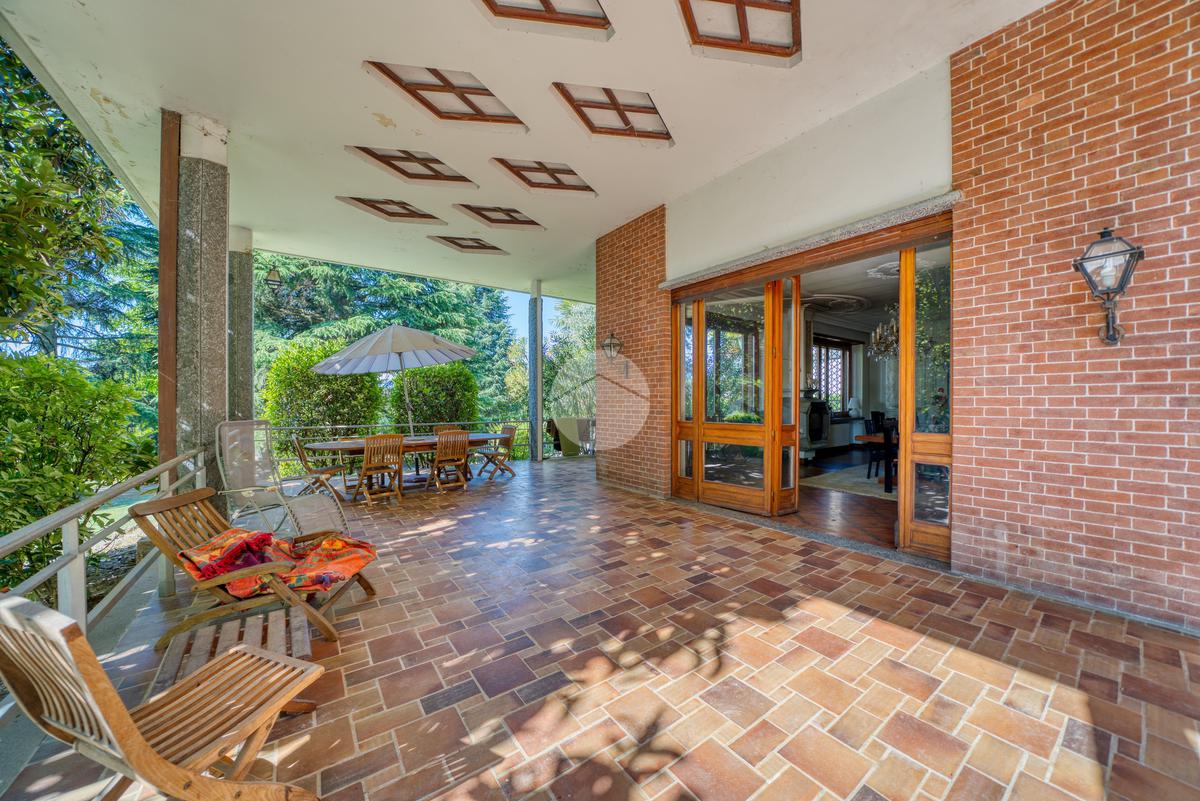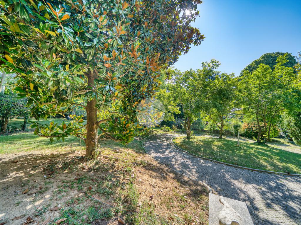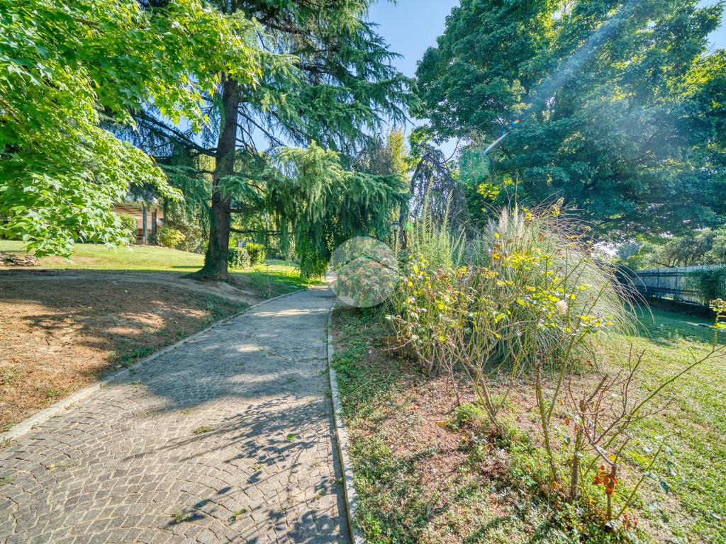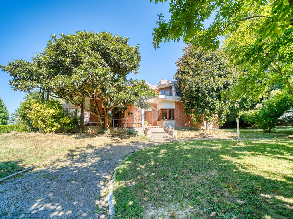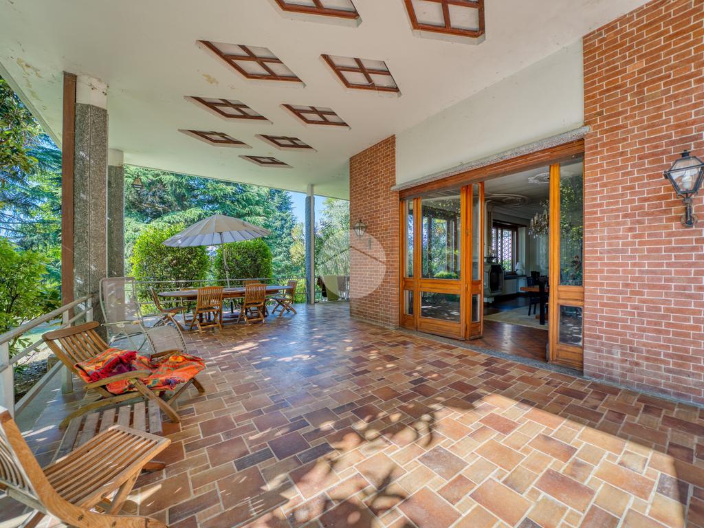 Strada Santa Maria: Immersa nel verde della collina Morenica di Rivoli, circondata da circa 3500 mq di giardino privato, ad una altitudine di circa 400 mt slm. nella privacy più assoluta, con un viale di ingresso riservato che si snoda tra gli alberi, sorge questa Villa in stile classico, ricca di dettagli raffinati. Salendo alcuni gradini ci si trova sul patio esterno, che circonda tutta la zona giorno. La porta di ingresso conduce direttamente al grande e luminosissimo salone, dotato di finestre e porte-finestre affacciate sul patio, oltre che di un particolare camino interno/esterno. Un disimpegno conduce ad un ampio studio, al soggiorno con cucina, al bagno del piano e ad un ripostiglio. Al piano superiore, quattro camere da letto, ognuna con il suo bagno en-suite. Al piano interrato, una tavernetta, autorimessa per 6/8 auto ed una grande cantina, oltre ad un locale di sgombero, .
