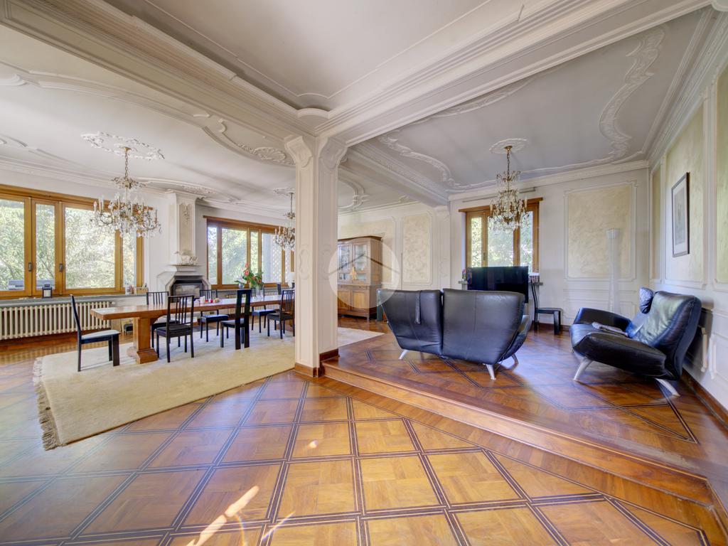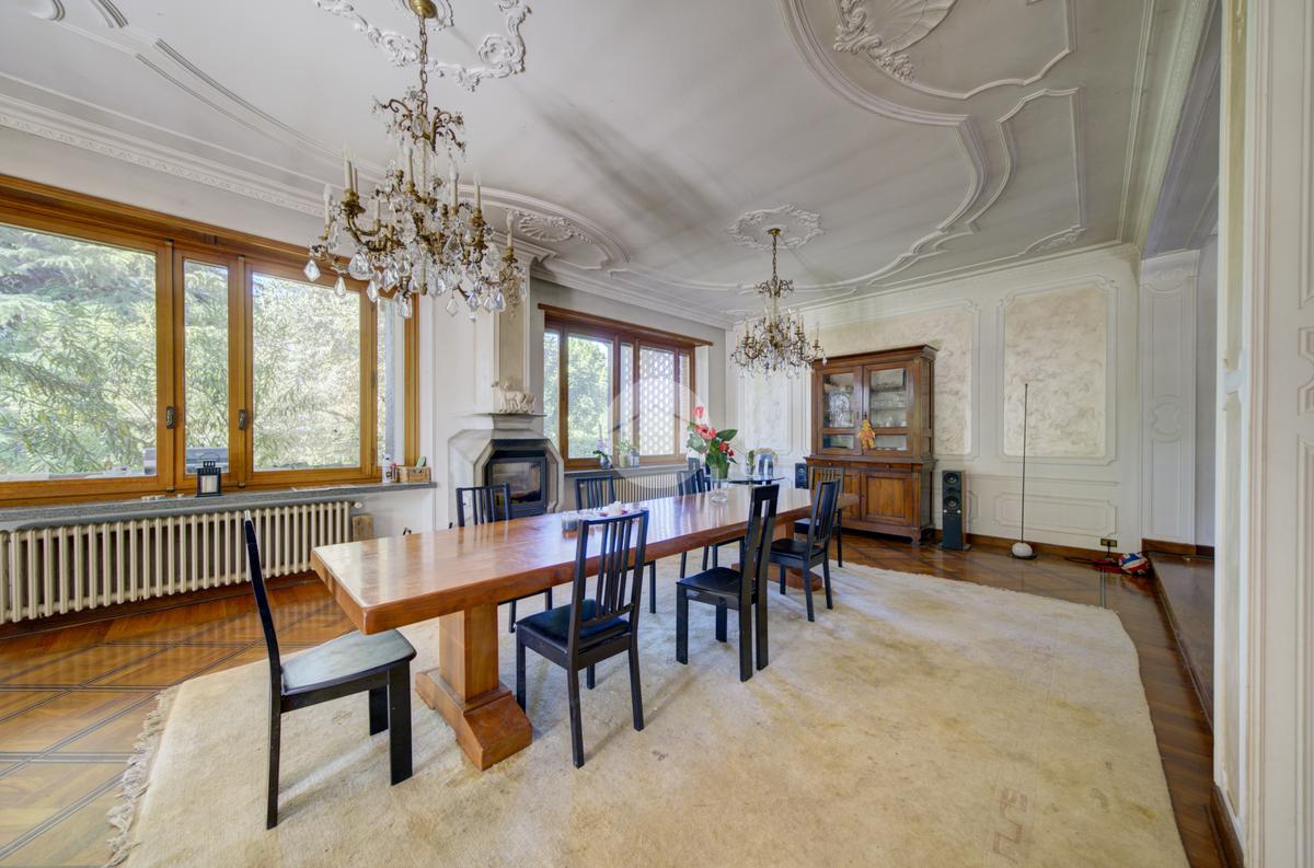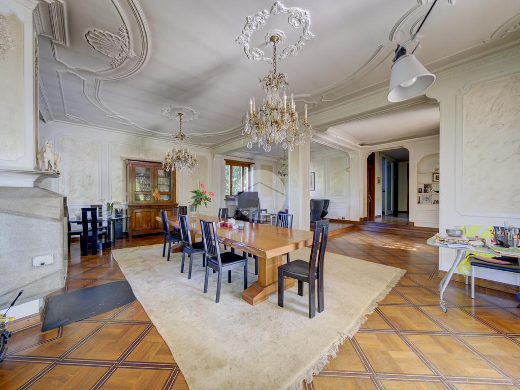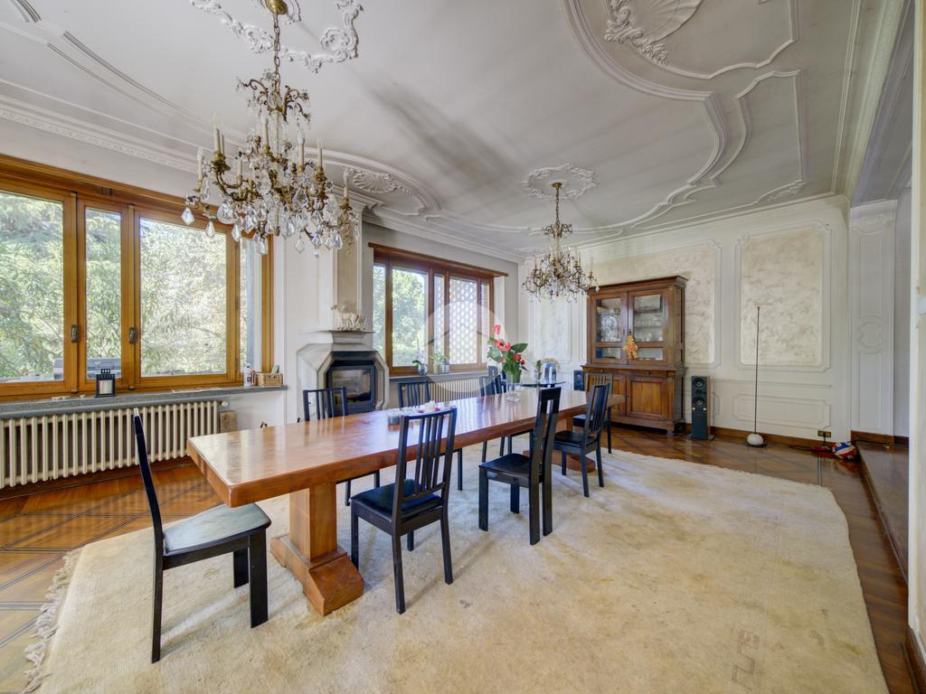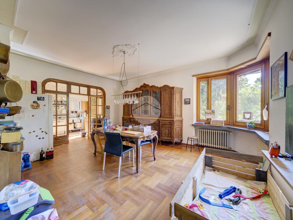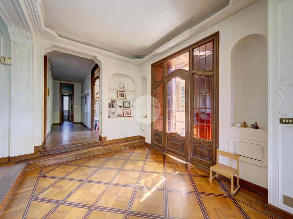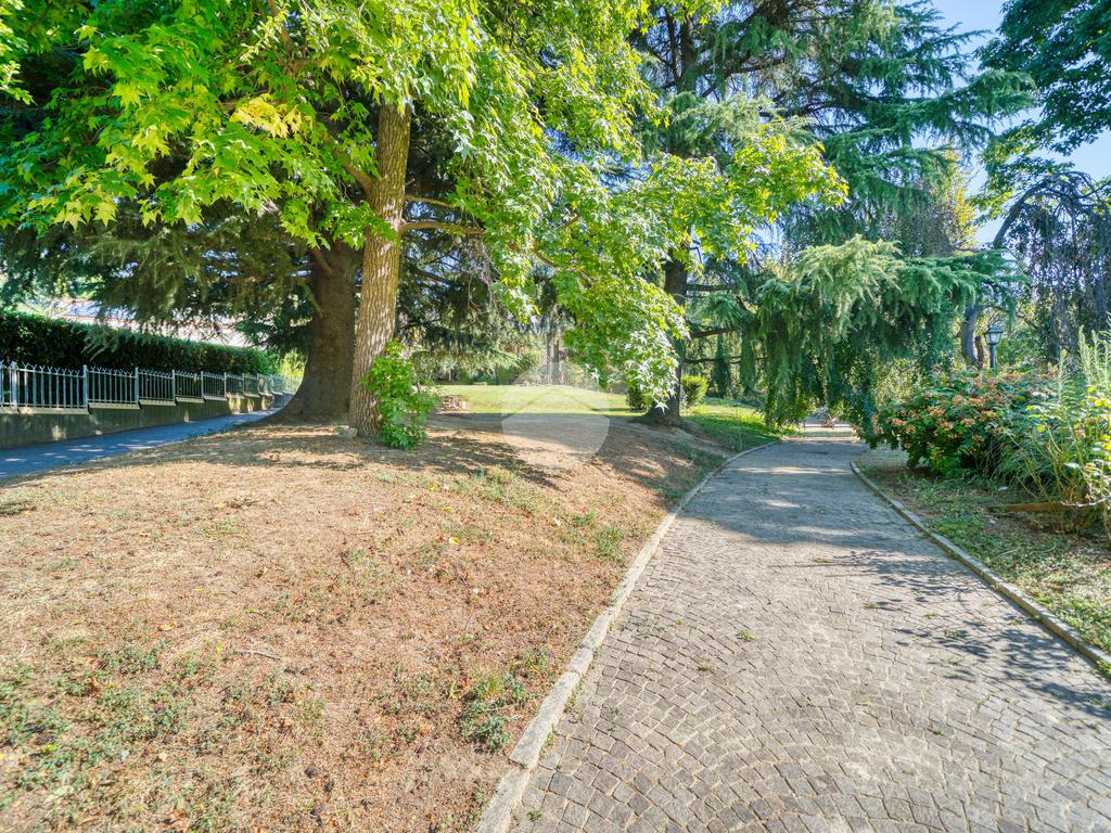 Strada Santa Maria: Immersa nel verde della collina Morenica di Rivoli, circondata da circa 3500 mq di giardino privato, ad una altitudine di circa 400 mt slm. nella privacy più assoluta, con un viale di ingresso riservato che si snoda tra gli alberi, sorge questa Villa in stile classico, ricca di dettagli raffinati. Salendo alcuni gradini ci si trova sul patio esterno, che circonda tutta la zona giorno. La porta di ingresso conduce direttamente al grande e luminosissimo salone, dotato di finestre e porte-finestre affacciate sul patio, oltre che di un particolare camino interno/esterno. Un disimpegno conduce ad un ampio studio, al soggiorno con cucina, al bagno del piano e ad un ripostiglio. Al piano superiore, quattro camere da letto, ognuna con il suo bagno en-suite. Al piano interrato, una tavernetta, autorimessa per 6/8 auto ed una grande cantina, oltre ad un locale di sgombero, .