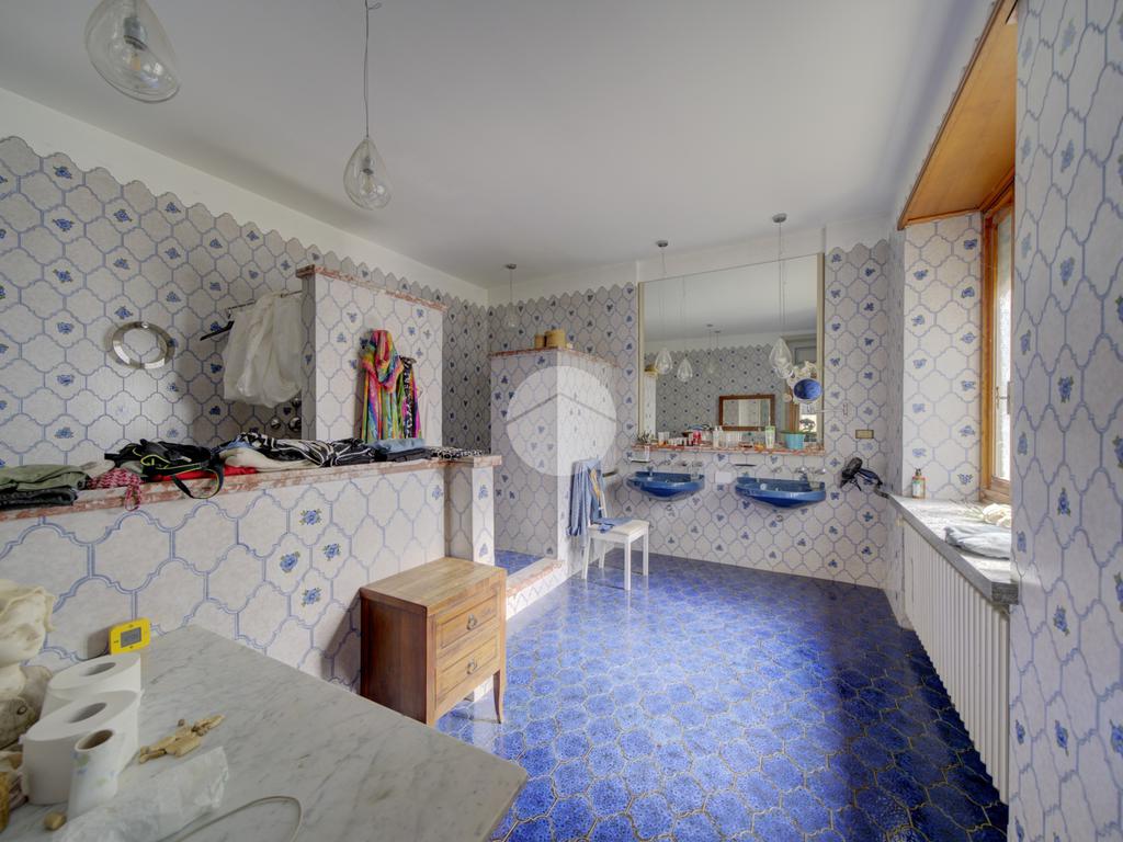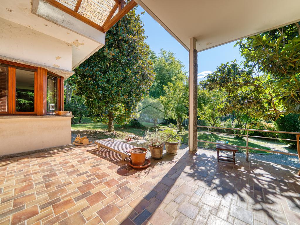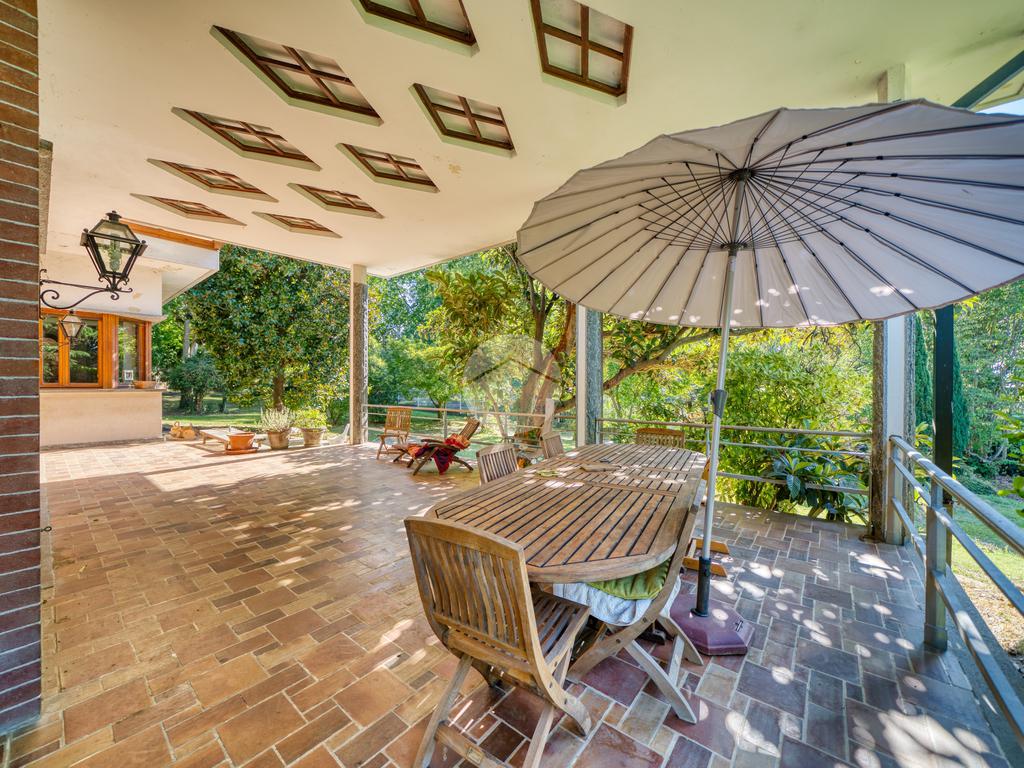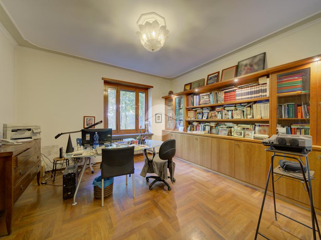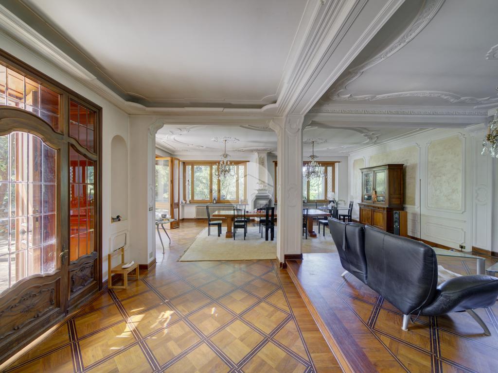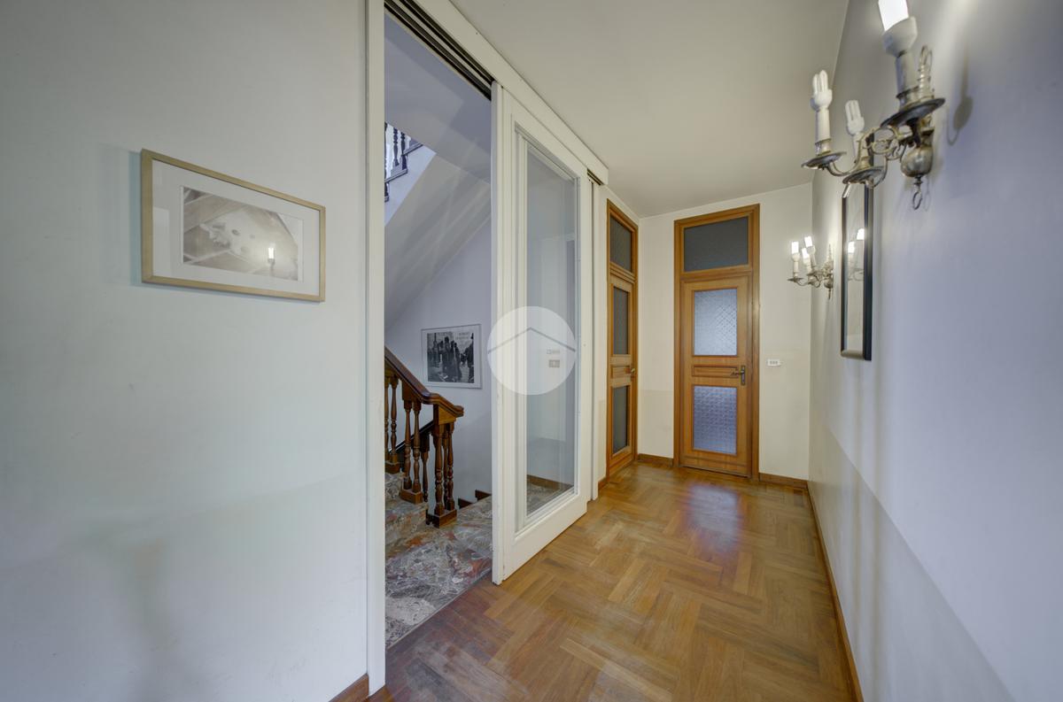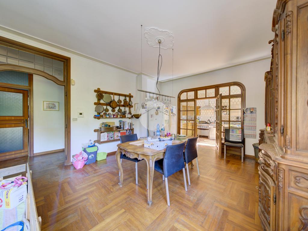 Strada Santa Maria: Immersa nel verde della collina Morenica di Rivoli, circondata da circa 3500 mq di giardino privato, ad una altitudine di circa 400 mt slm. nella privacy più assoluta, con un viale di ingresso riservato che si snoda tra gli alberi, sorge questa Villa in stile classico, ricca di dettagli raffinati. Salendo alcuni gradini ci si trova sul patio esterno, che circonda tutta la zona giorno. La porta di ingresso conduce direttamente al grande e luminosissimo salone, dotato di finestre e porte-finestre affacciate sul patio, oltre che di un particolare camino interno/esterno. Un disimpegno conduce ad un ampio studio, al soggiorno con cucina, al bagno del piano e ad un ripostiglio. Al piano superiore, quattro camere da letto, ognuna con il suo bagno en-suite. Al piano interrato, una tavernetta, autorimessa per 6/8 auto ed una grande cantina, oltre ad un locale di sgombero, .